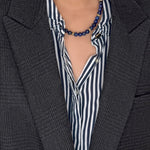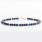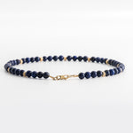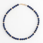 Collier de perles de lapis lazuli délavées et perles intercalaires en plaqué or beige. Ce collier est monté à la main dans un atelier parisien.