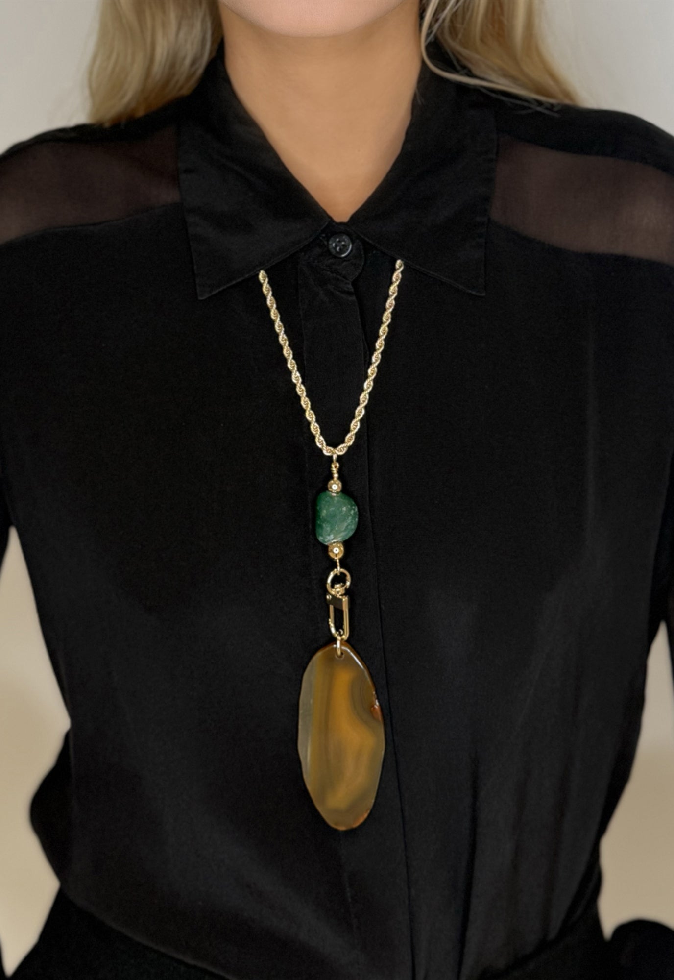 Materials: 3 micron gold-plated brass chain and findings (including clasp, lobster clasp, and pendant bail)