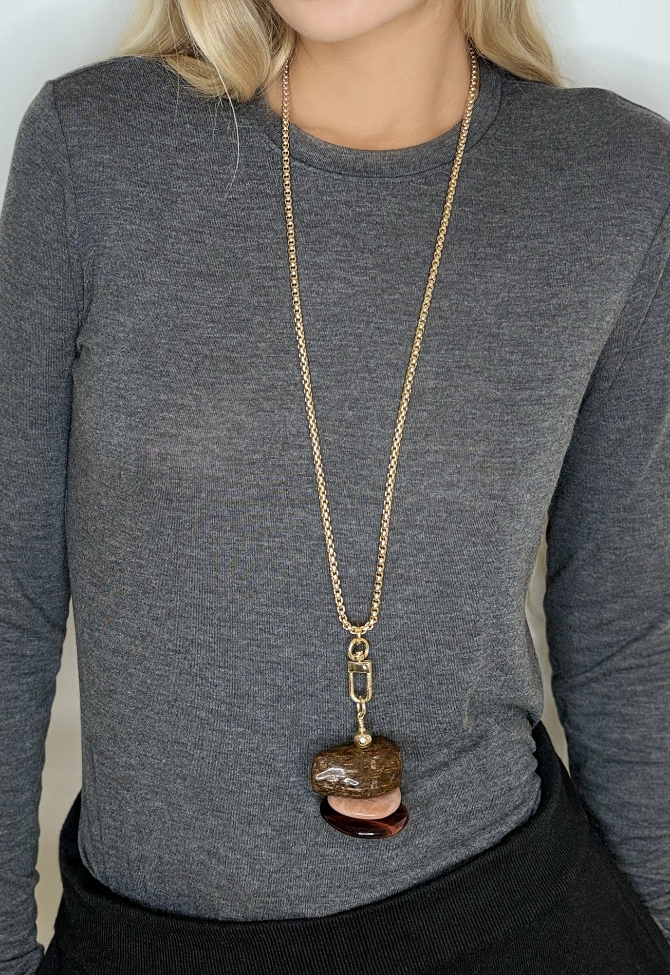 Materials: 3 micron gold-plated brass chain and findings (including clasp, lobster clasp, and pendant bail)